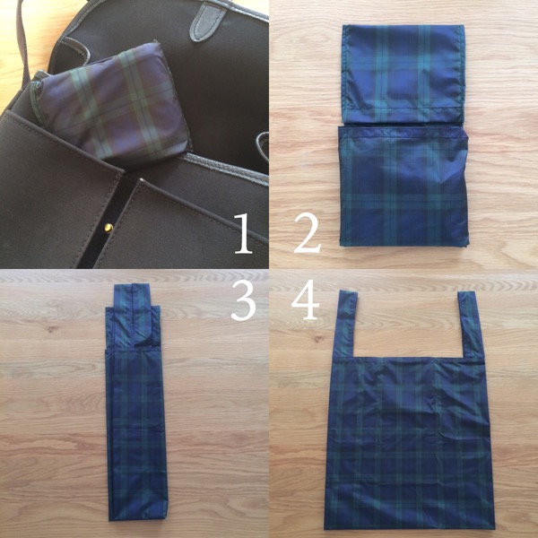 薄く丈夫なチェック柄のナイロン生地でカバンの中に常備しておくと便利です。
